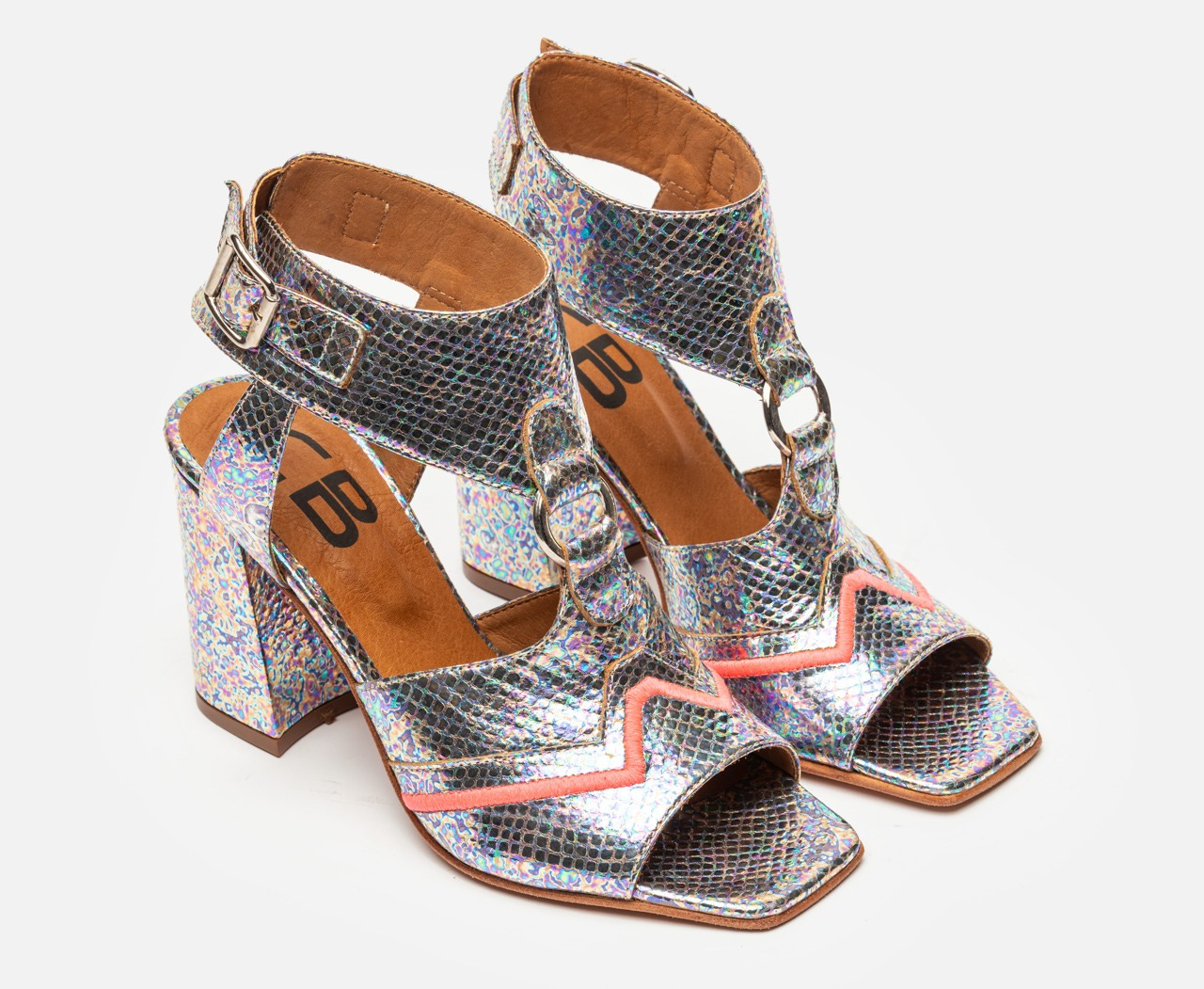 Iridescent/Prismatic leather when you want the light to follow you; it reads sophisticated in daylight and electric after dark.