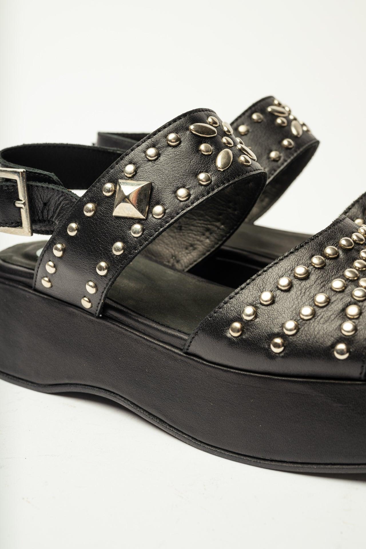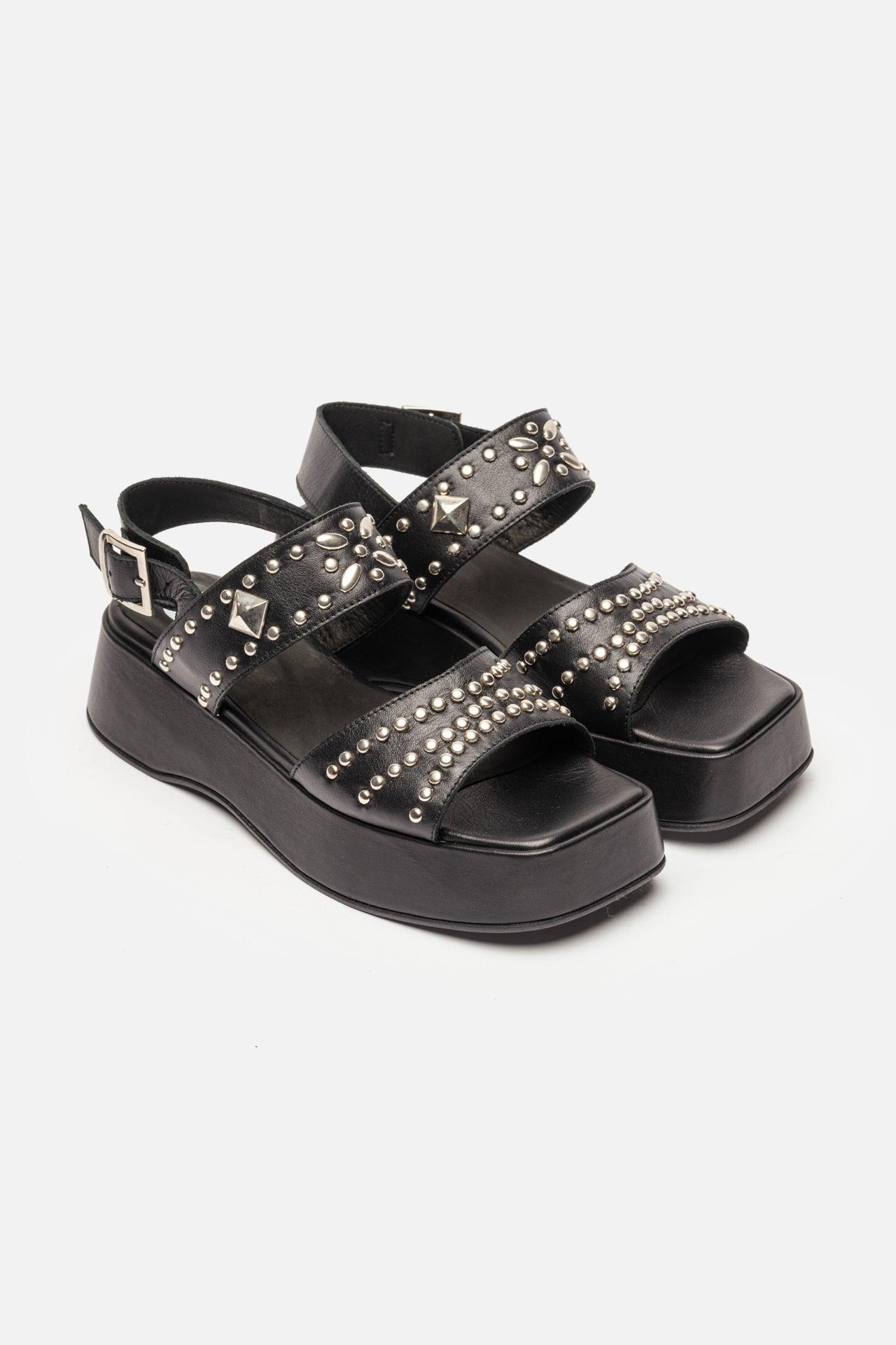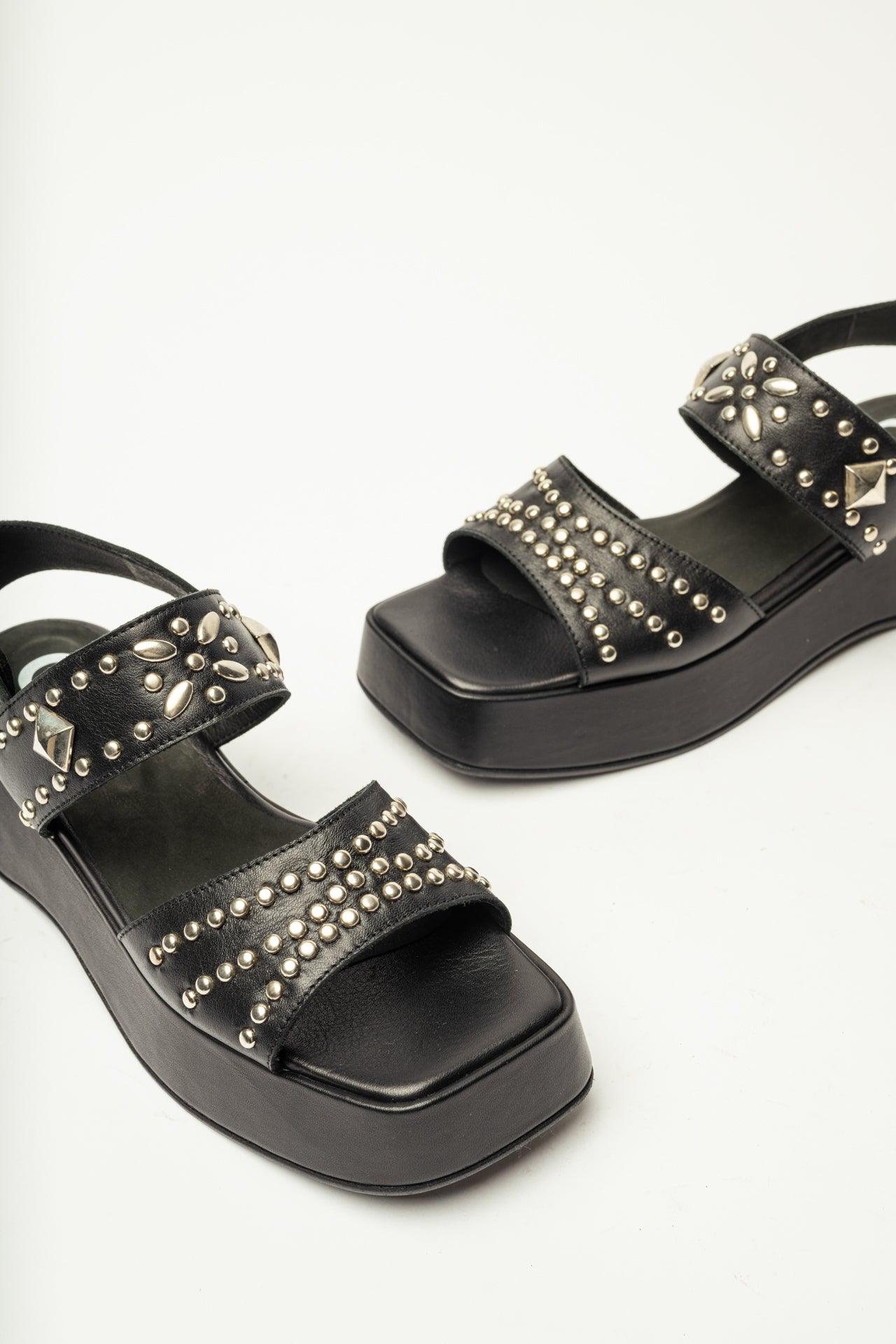 The bold Ellipsis sandal showcases decorative studs and a chunky platform sole, ideal for fashion-forward summer outfits.