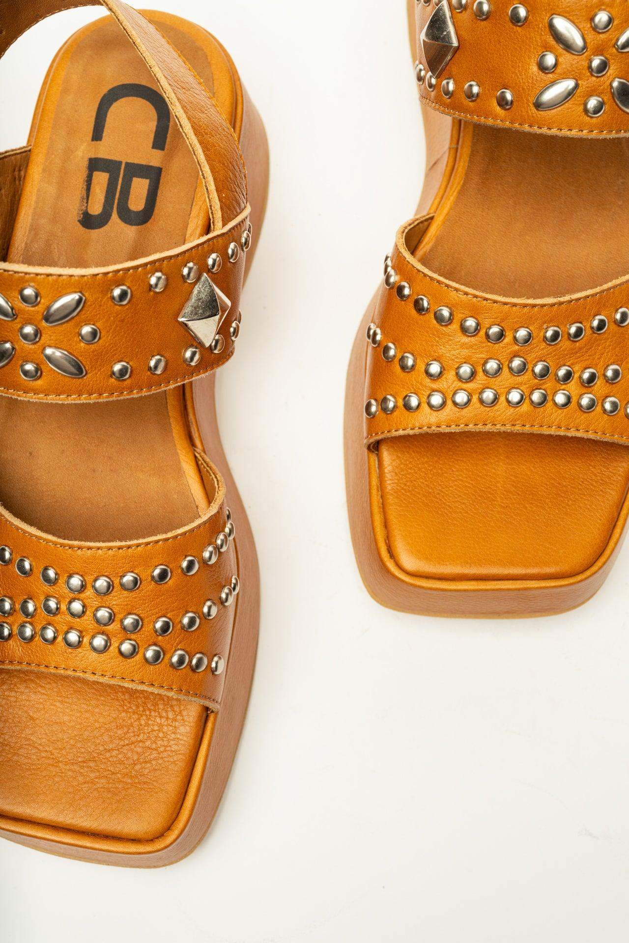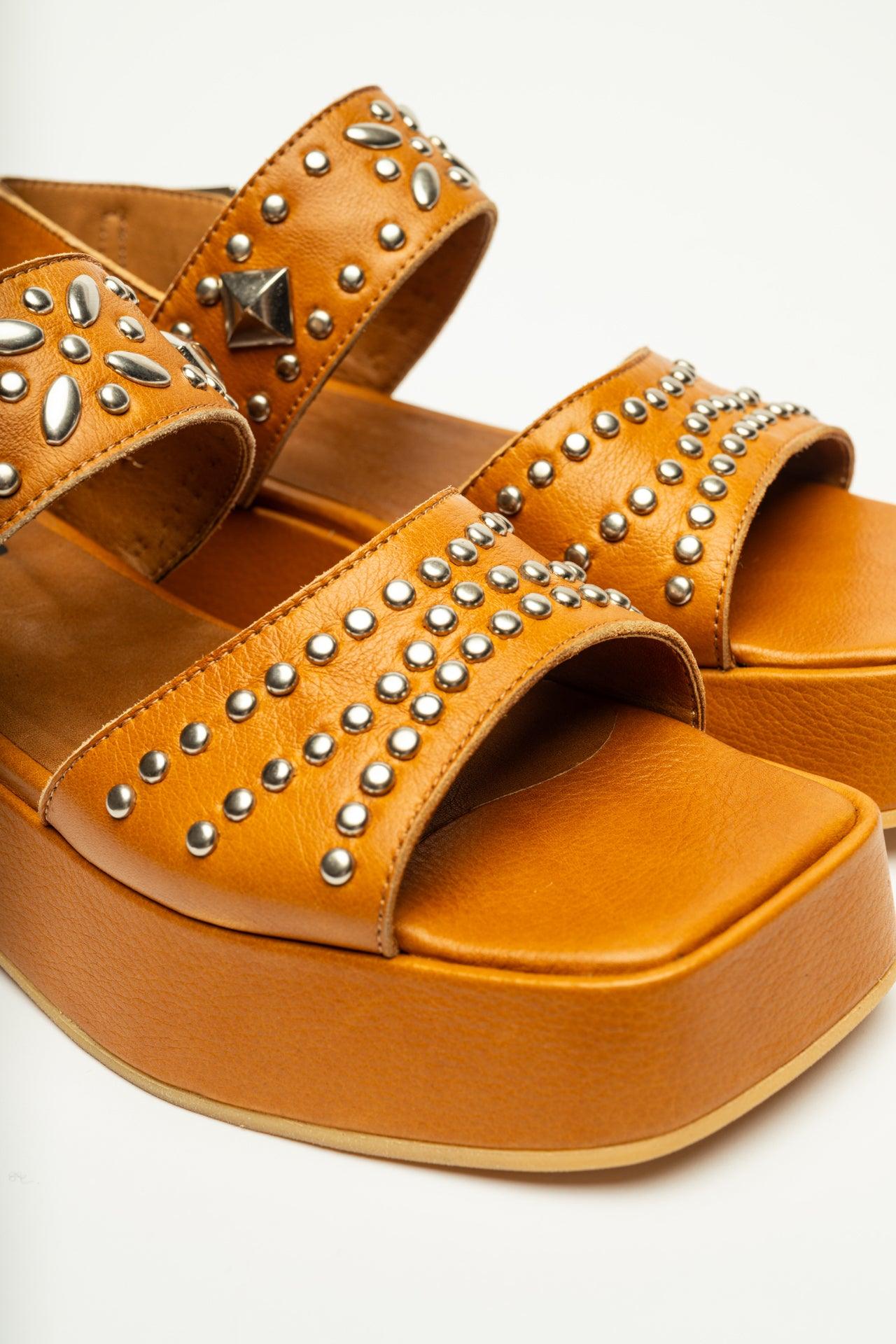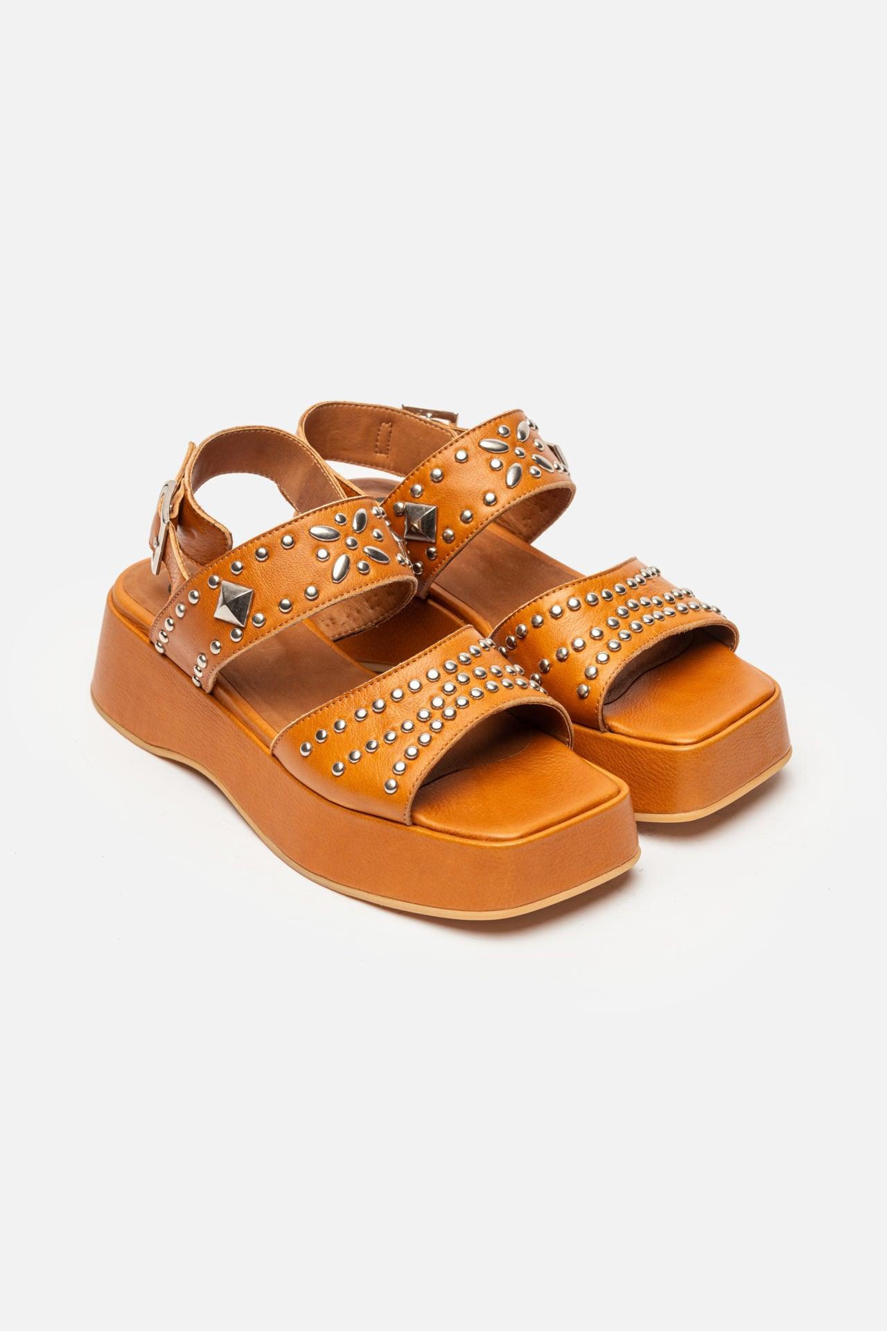 The bold Ellipsis sandal showcases decorative studs and a chunky platform sole, ideal for fashion-forward summer outfits.
