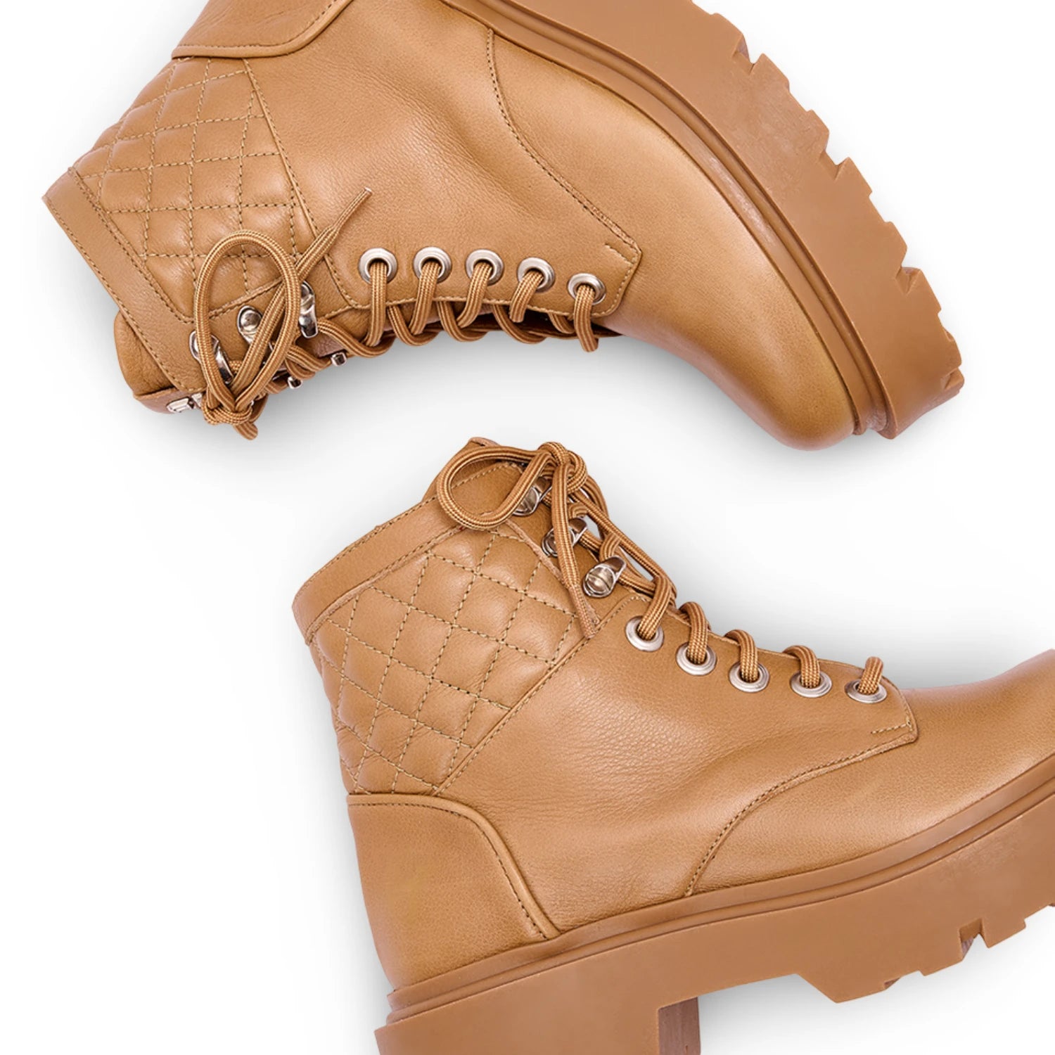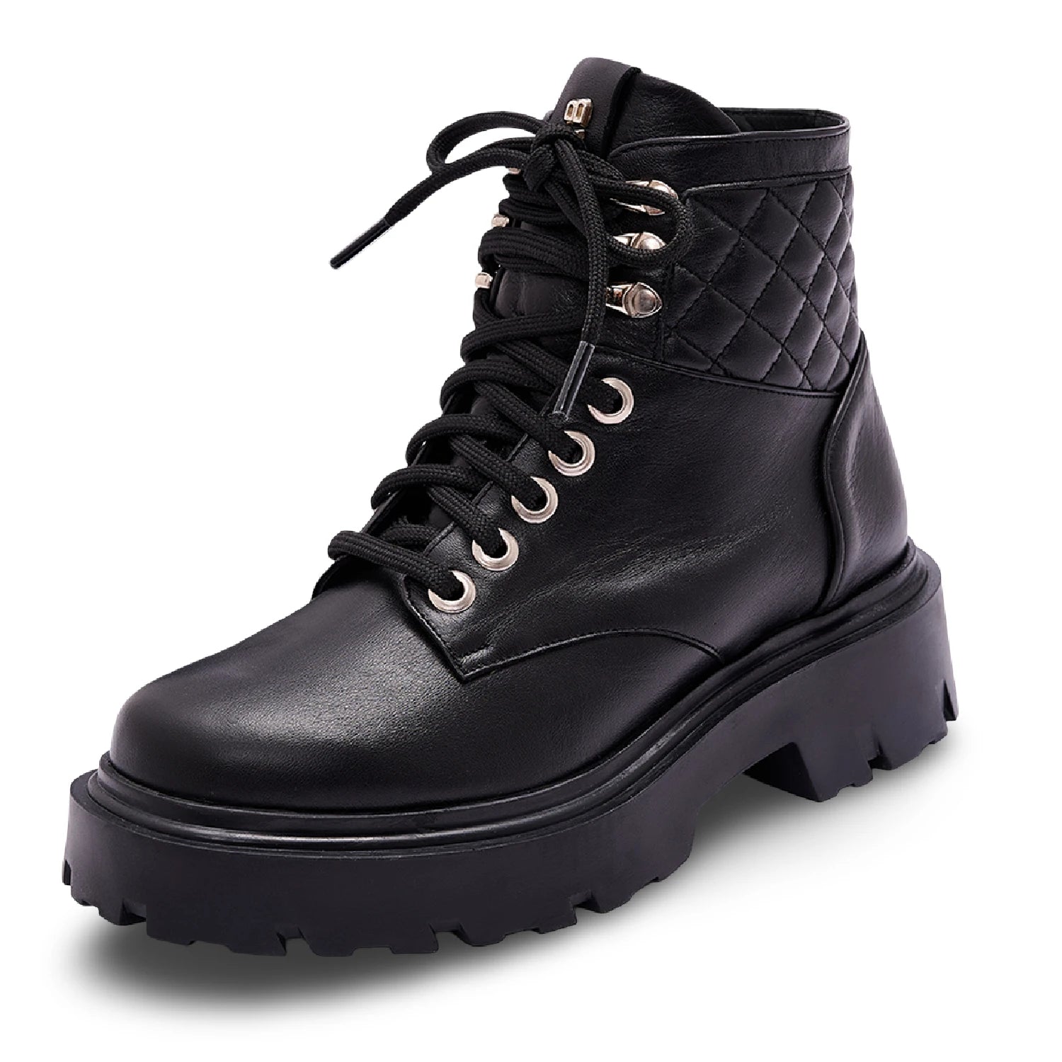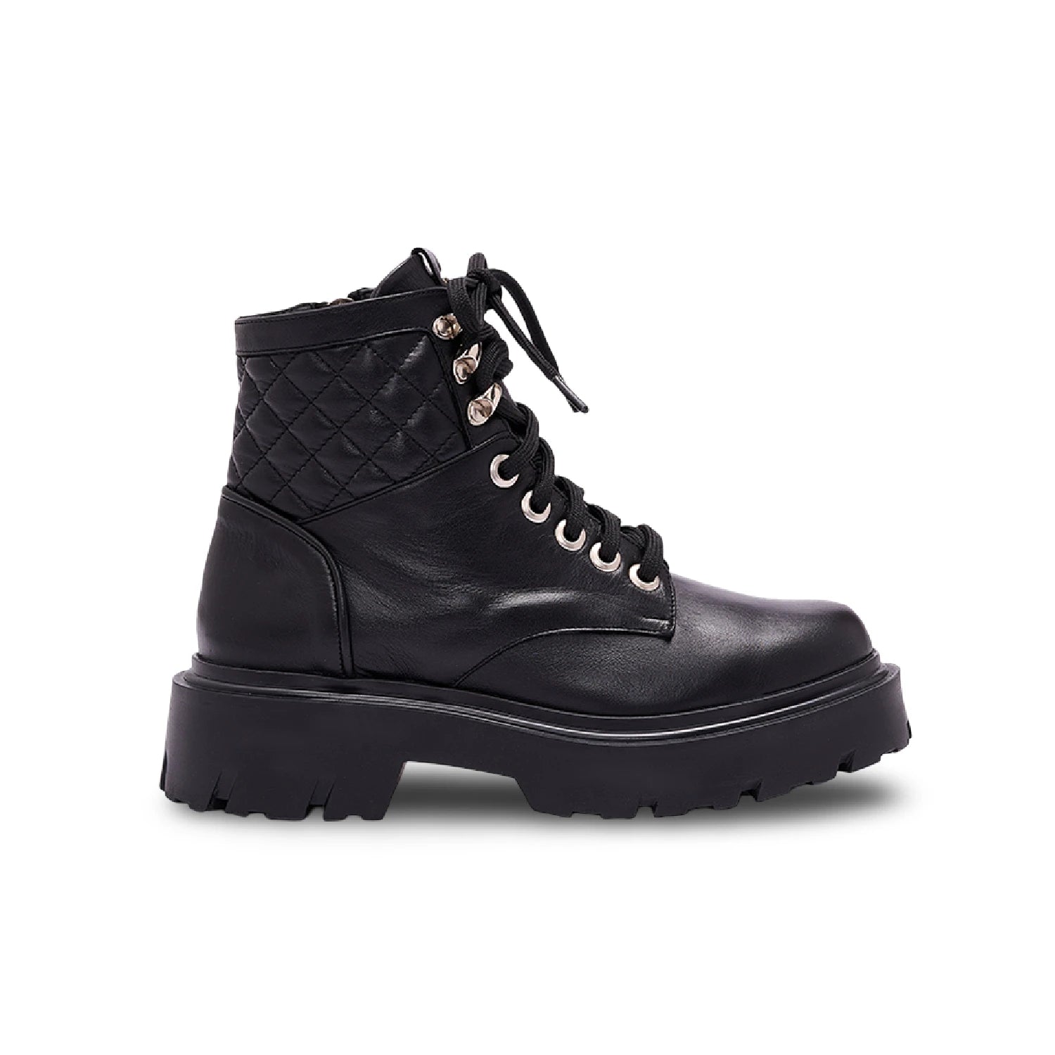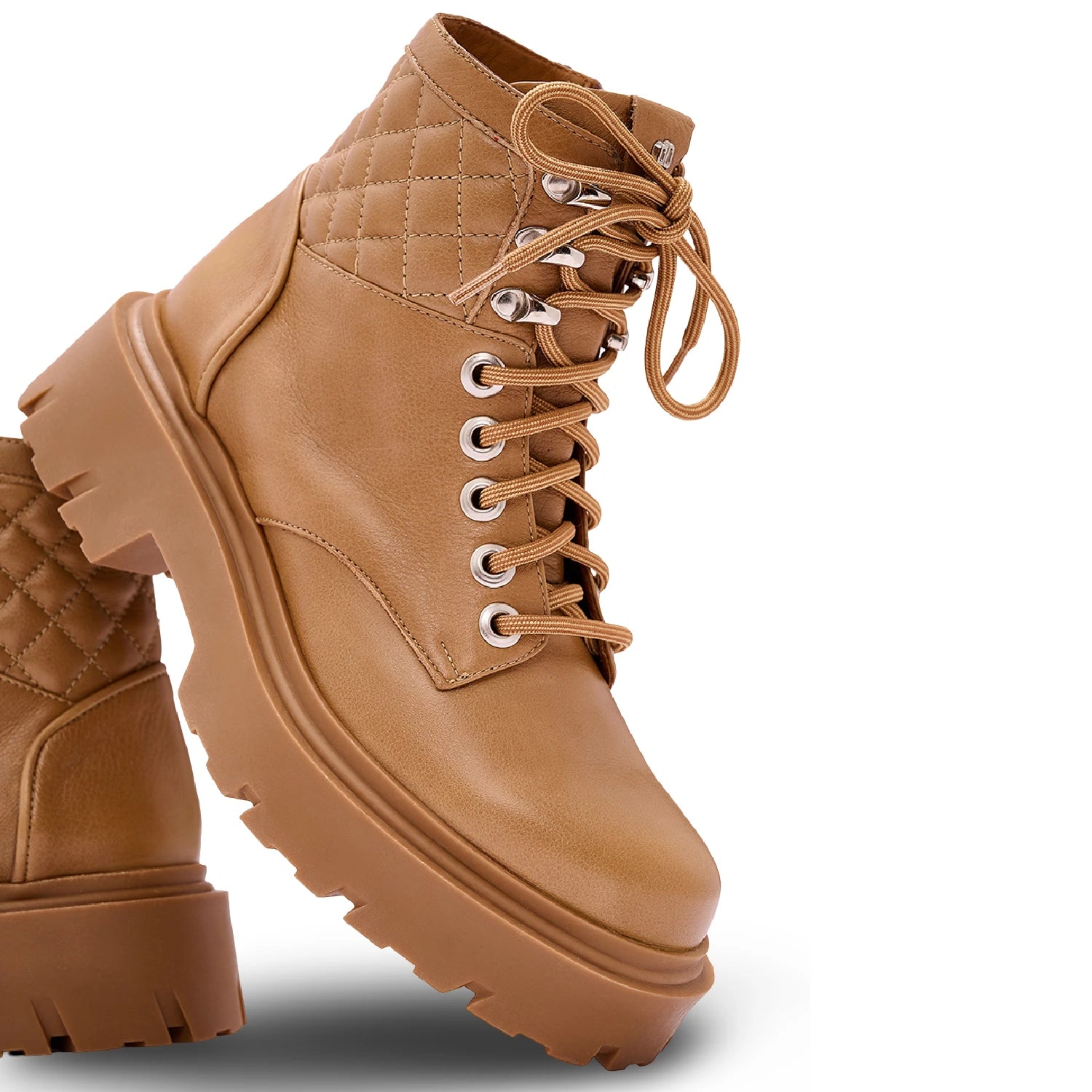 The "Here You Go" is a statement-making combat boot, blending timeless craftsmanship with contemporary edge. Featuring quilted leather panels, metal eyelets, and a durable lug sole, it offers both rugged durability and effortless style. Available in Black, Pewter, and Tan, this boot is perfect for those who embrace individuality and confidence in their footwear.