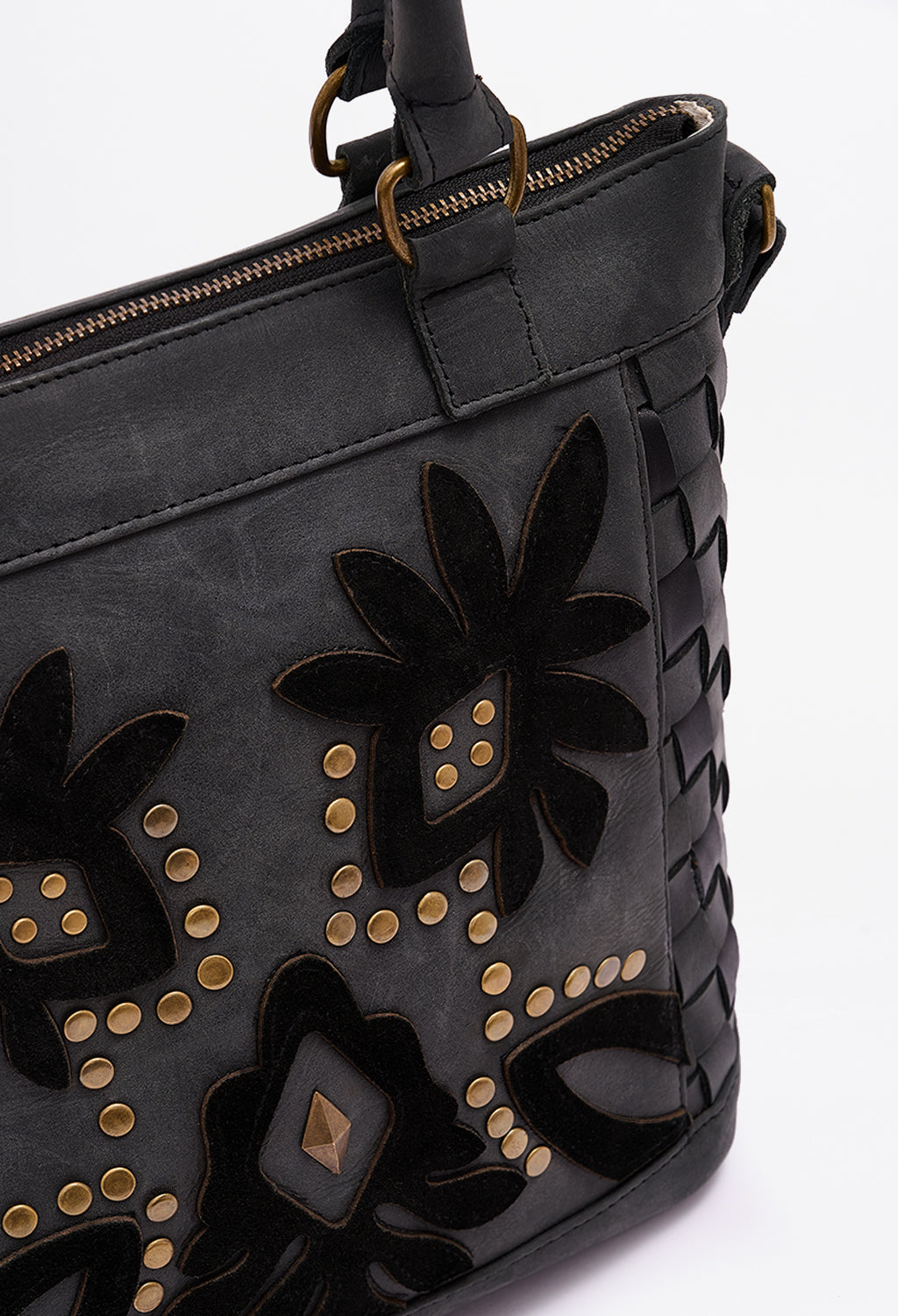 • Floral appliqué with studs
