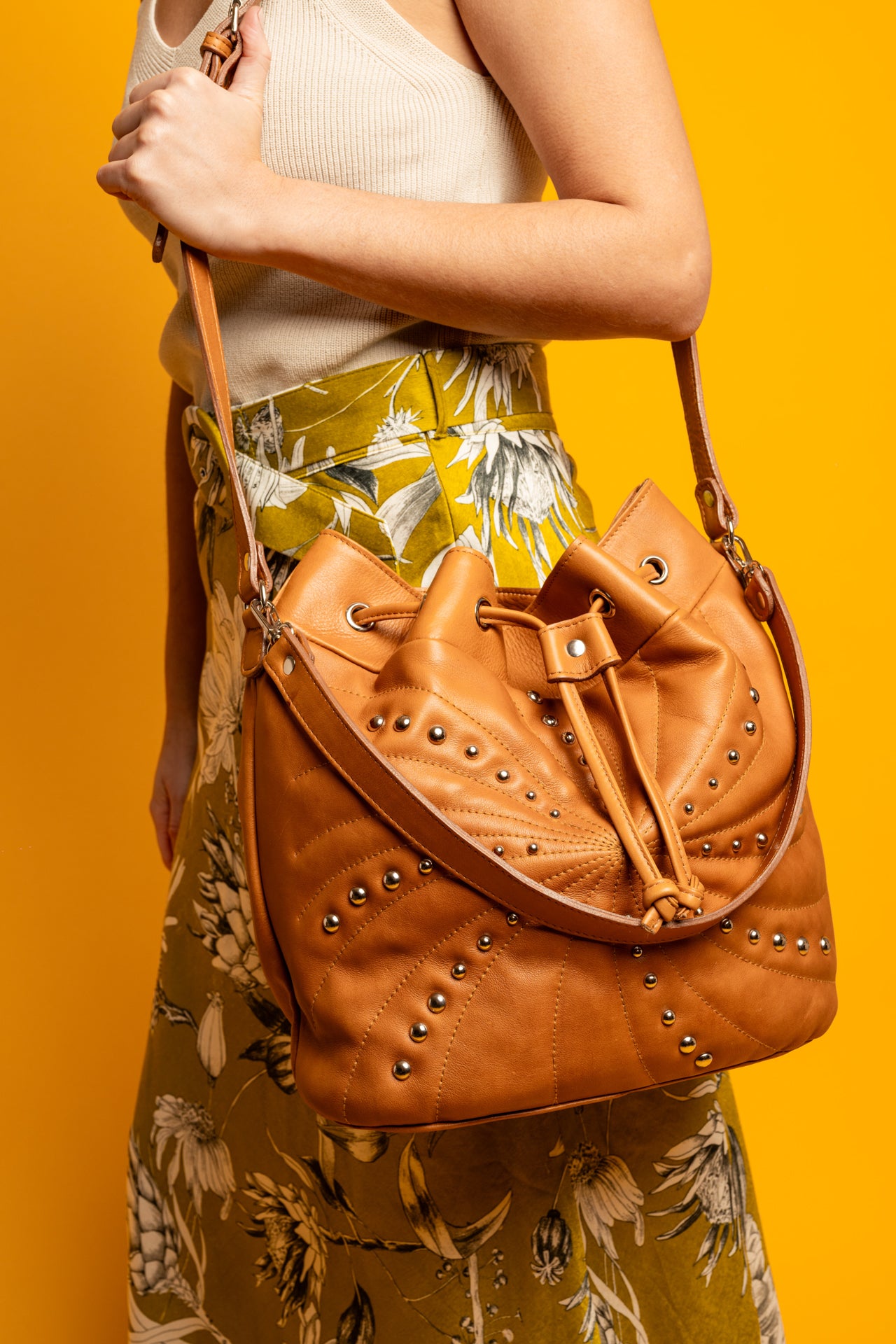 The Nova bag by Clara Barcelo elevates the classic bucket silhouette with its swirl-stitching and metallic stud details. Available in Black, Tan, and Cream, each crafted from supple premium leather, it’s designed for women who want functionality with standout design. Spacious, versatile, and striking, it’s the perfect blend of artistry and everyday utility.