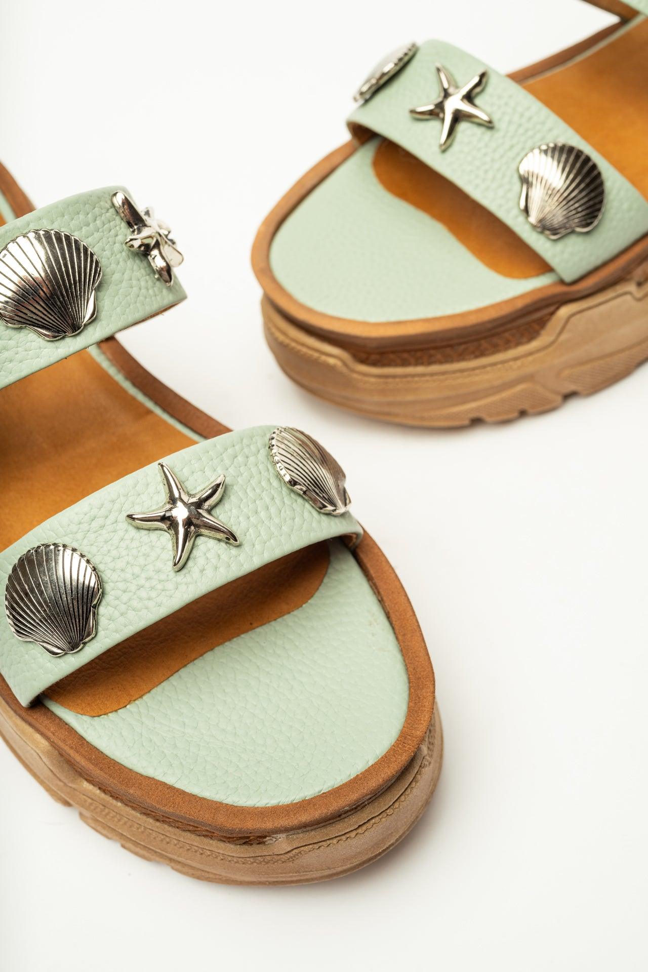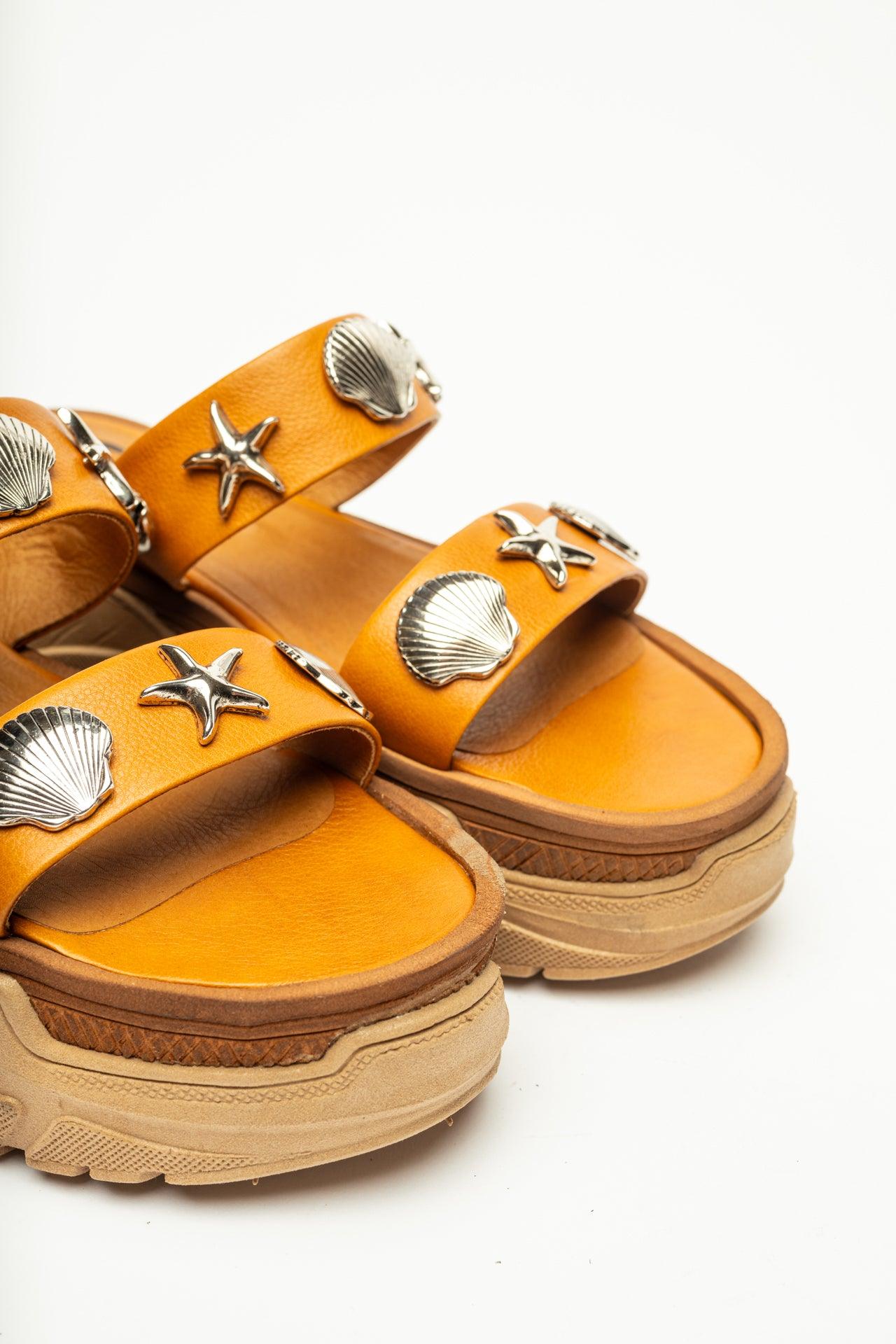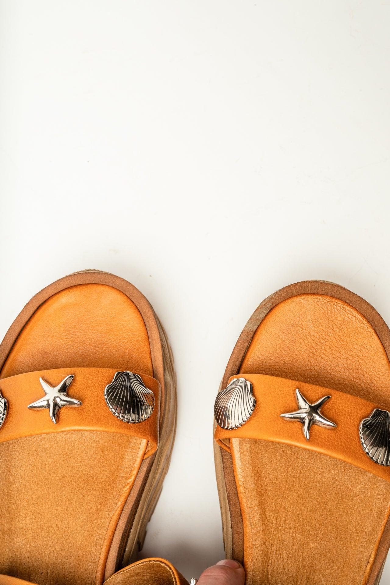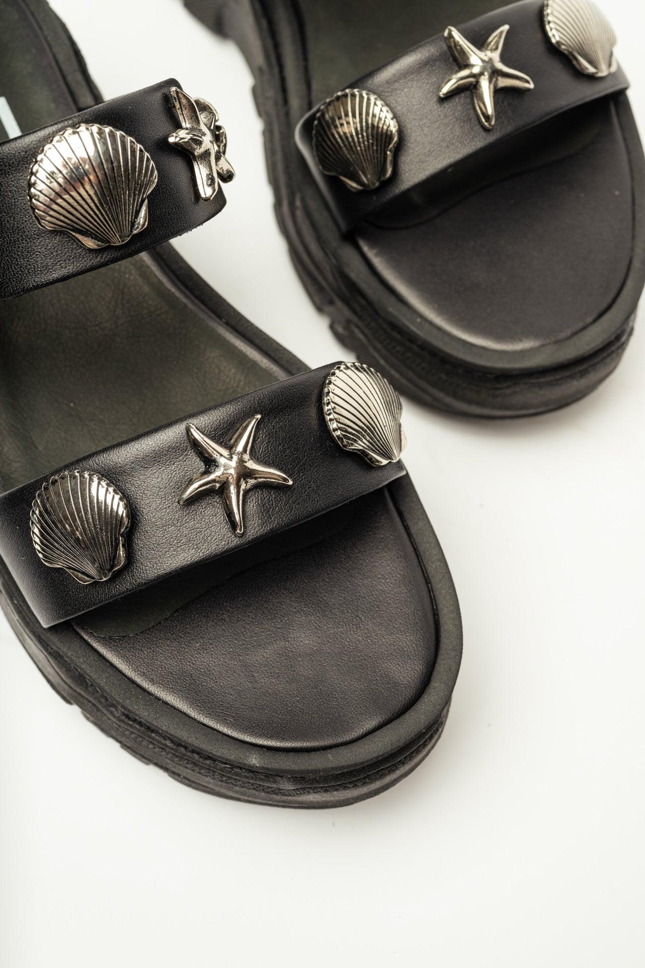 Playful and bold, the Sucundum, Sucundum sandal, featuring starfish and shell details, is a fun addition to any summer wardrobe.