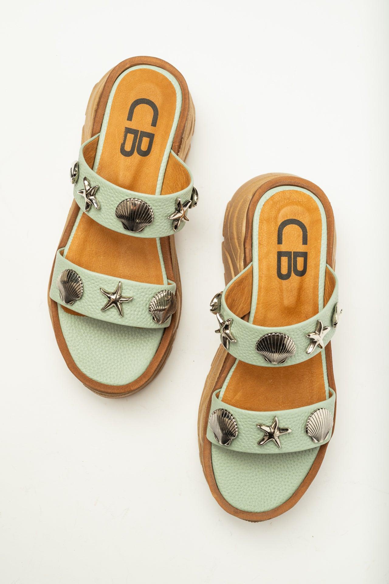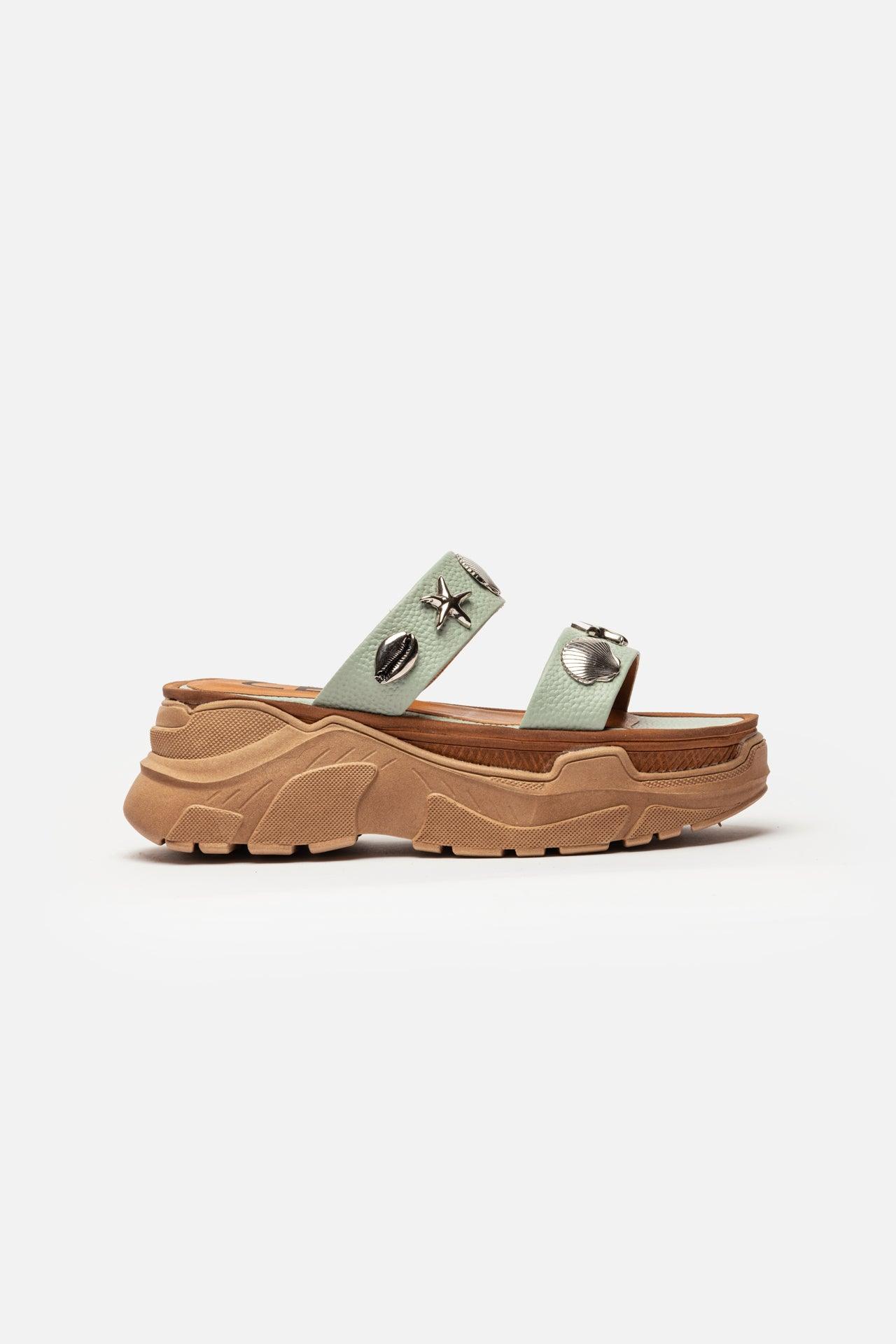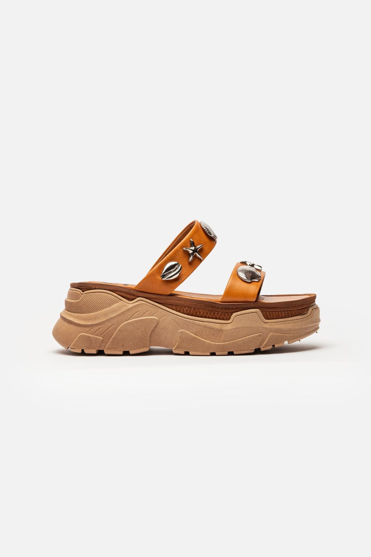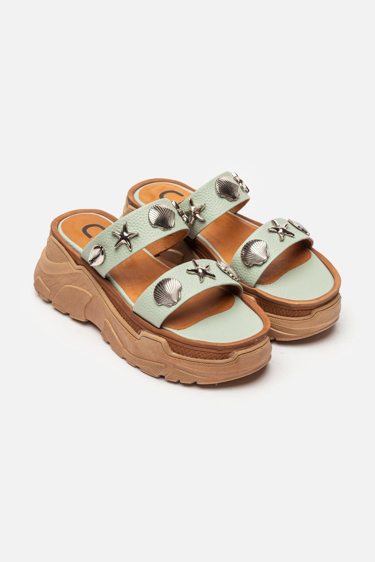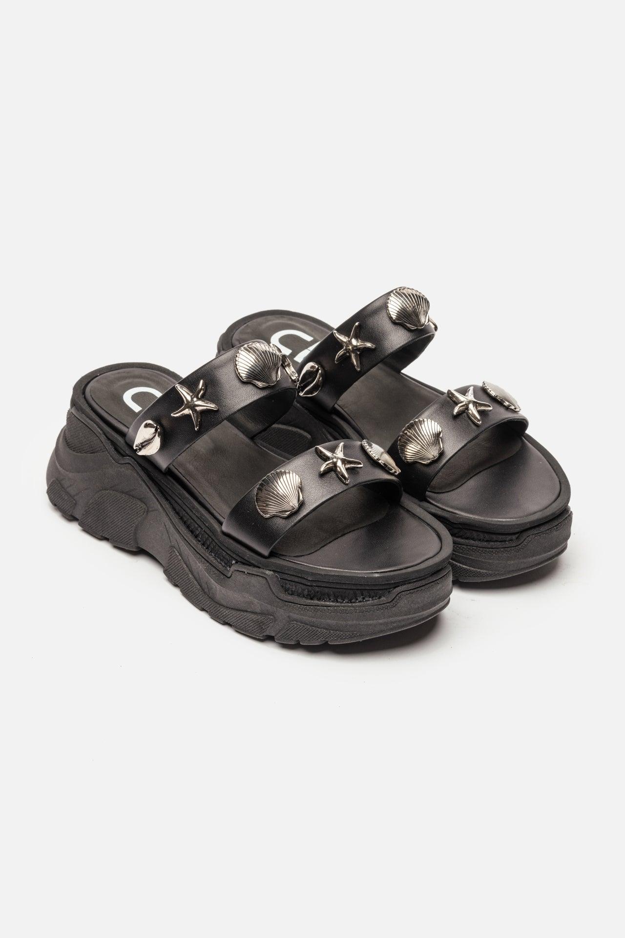 Playful and bold, the Sucundum, Sucundum sandal, featuring starfish and shell details, is a fun addition to any summer wardrobe.