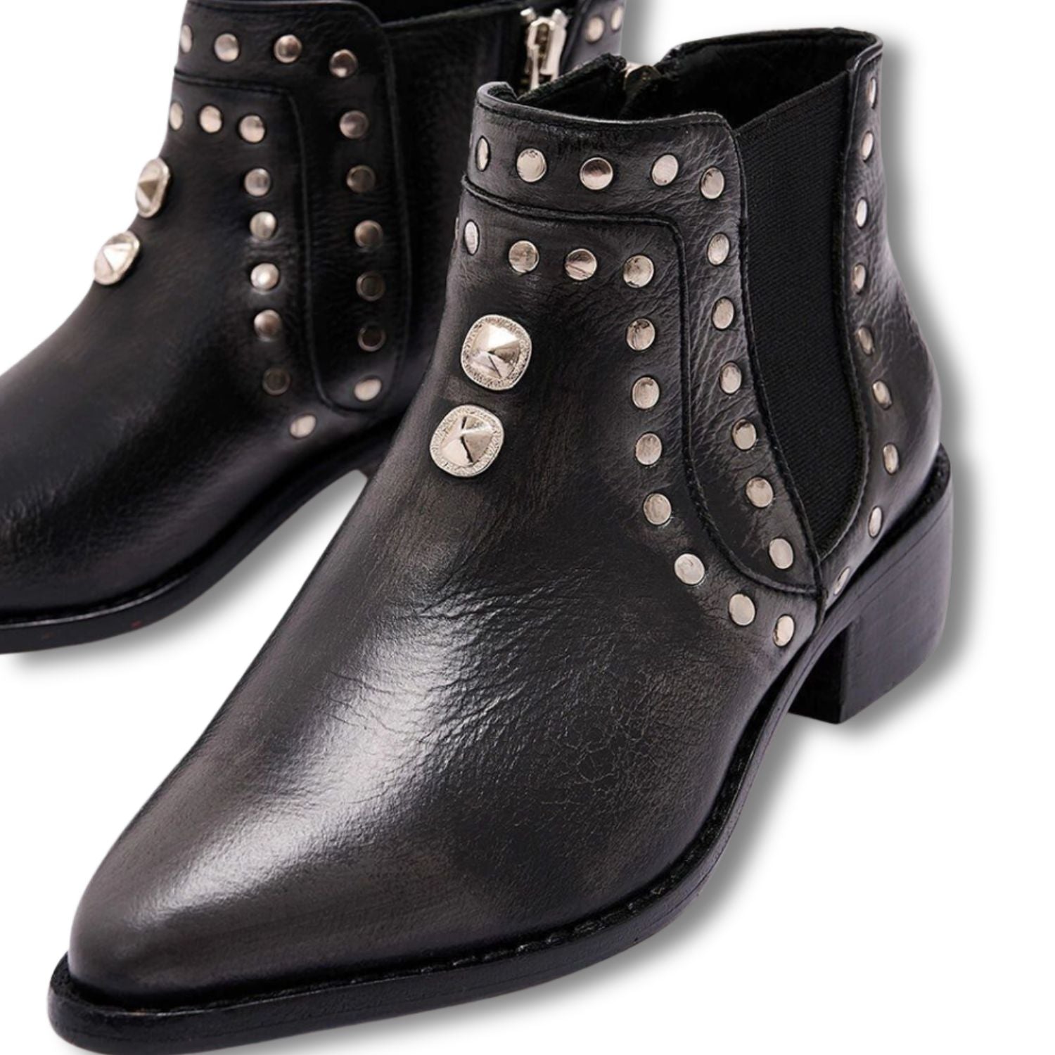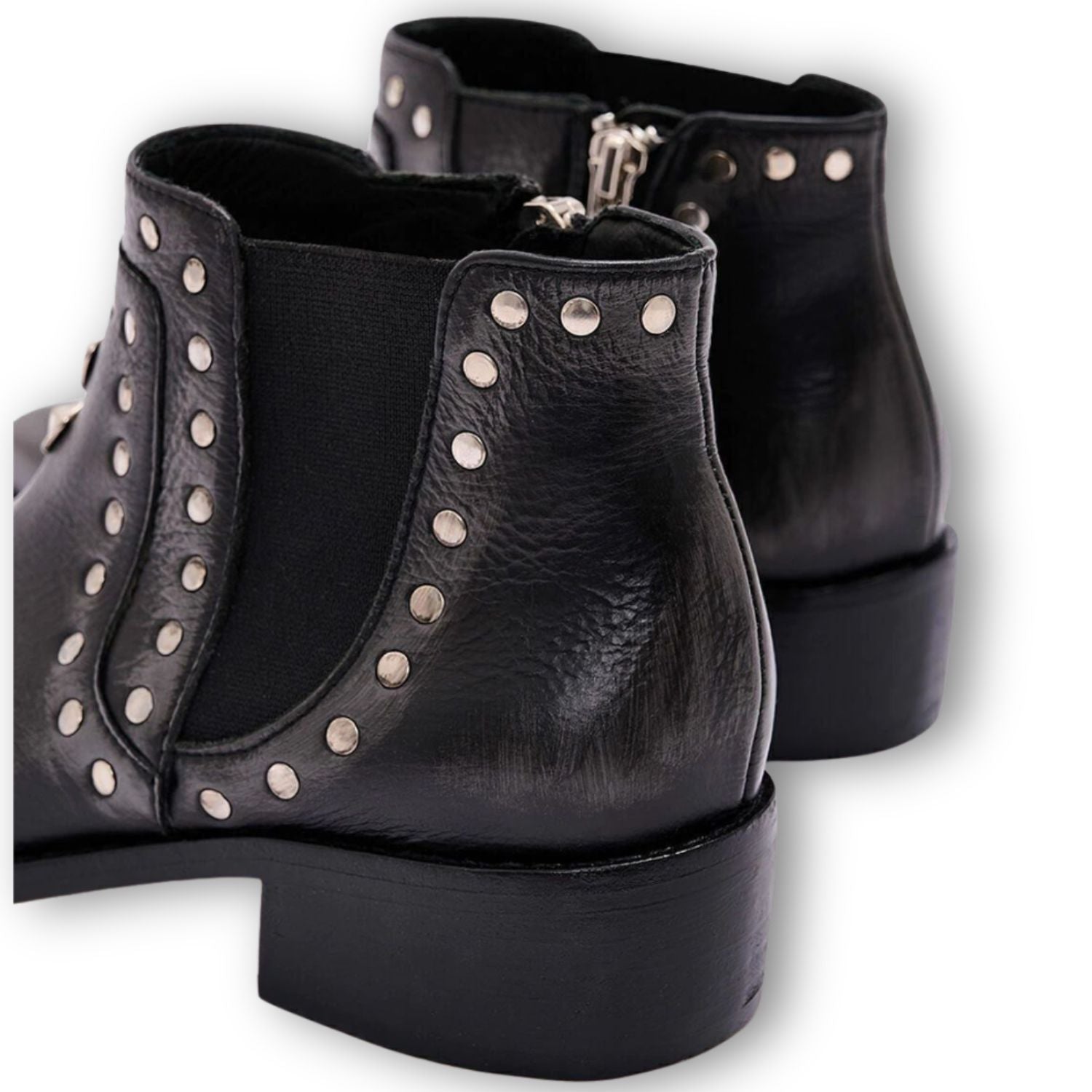 The Take It or Leave It boot by Clara Barcelo is a bold fusion of rebellion and refinement. Featuring striking studded details and a sleek, modern silhouette, it embodies fearless self-expression. Crafted for those who value exceptional craftsmanship with an edge, this ankle boot delivers style and attitude in equal measure. Designed for versatility, it effortlessly transitions from day to night, making it the perfect statement piece for those who walk with confidence and refuse to blend in.