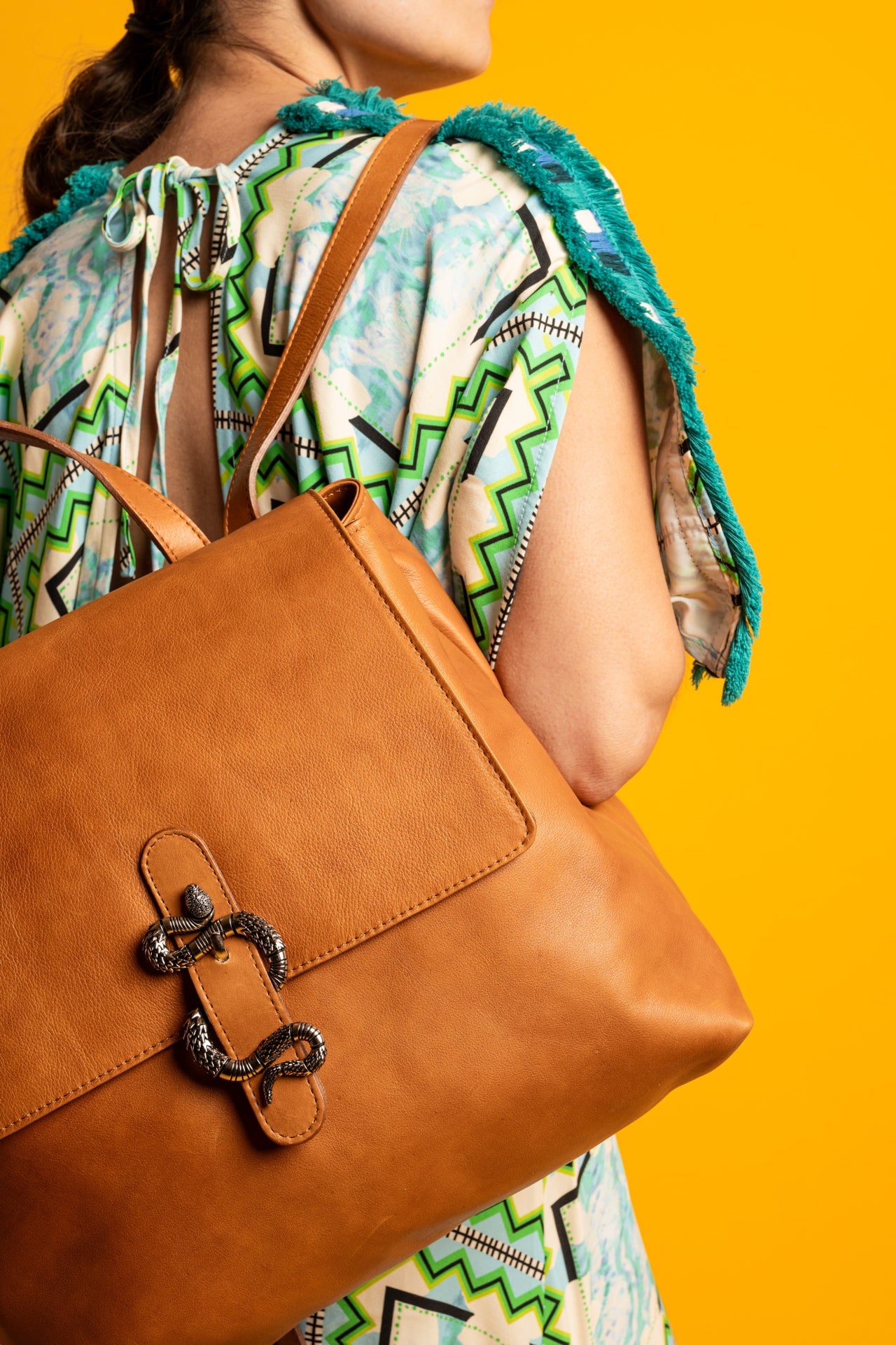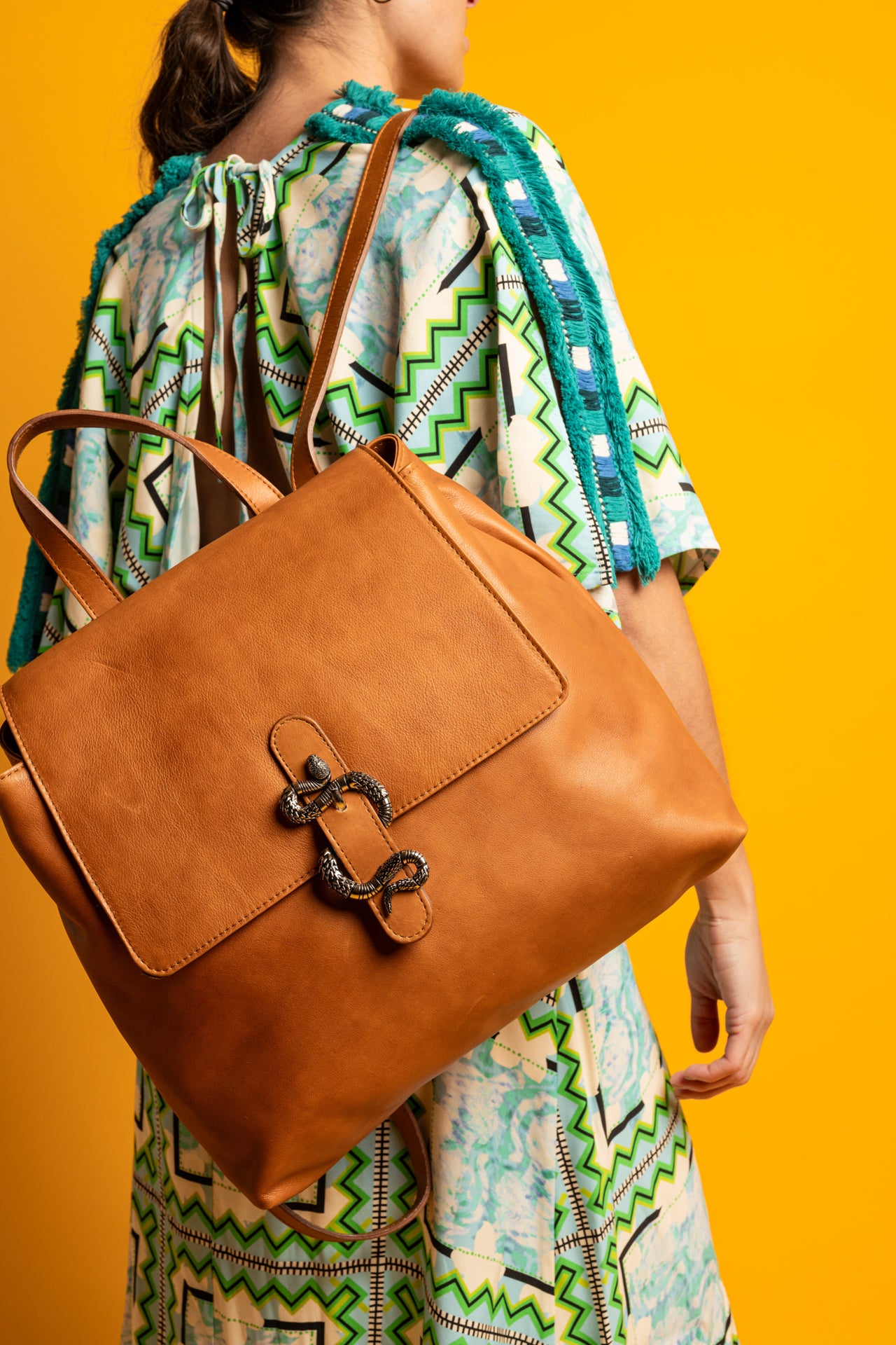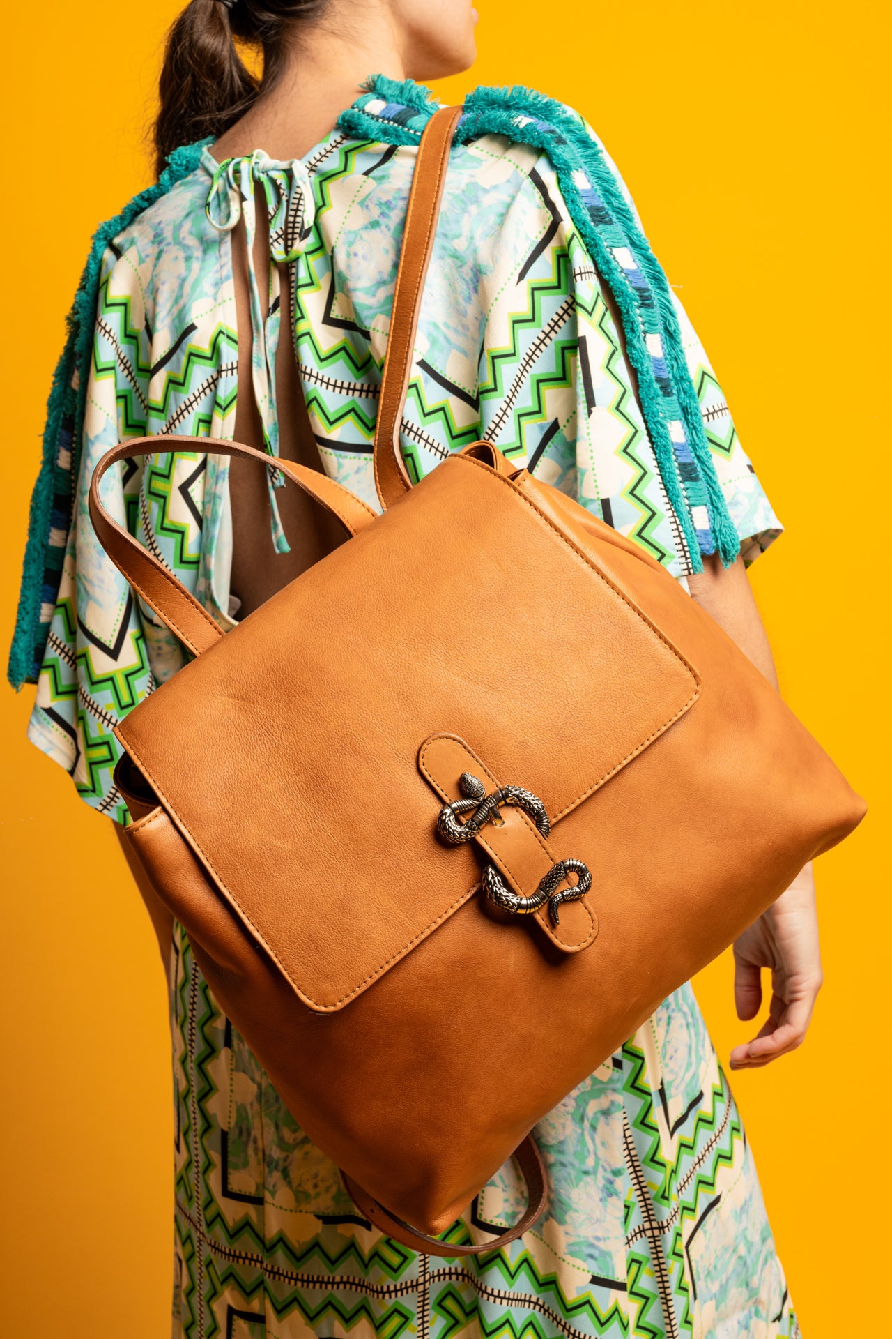 Crafted from premium leather with a secure flap-and-buckle closure, spacious interior, and adjustable straps for all-day comfort.